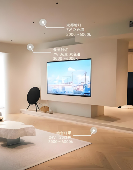 燈具的參數(shù)選擇至關(guān)重要,包括色溫、光束角和顯色指數(shù)等。色溫選擇不當(dāng)可能會讓空間顯得冷清或壓抑。例如,臥室和客廳建議選擇3000K - 3500K的暖白光,營造溫馨的氛圍,而廚房和衛(wèi)生間則適合 4000K 的中性光。光束角的選擇也會影響照明效果。一般來說,15° - 24°的光束角適合用于突出裝飾,而36° - 60°的光束角則適合提供均勻的基礎(chǔ)照明。顯色指數(shù)(CRI)應(yīng)選擇90以上,以確保物體顏色的真實(shí)還原。