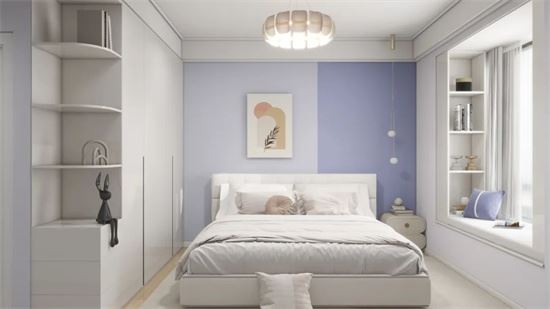 對于平面空間較大的臥室來說,使用色彩柔和的藝術漆來裝扮墻面,一來空間空間不會顯得雜亂,二來溫馨的顏色能營造出優雅的空間氛圍。