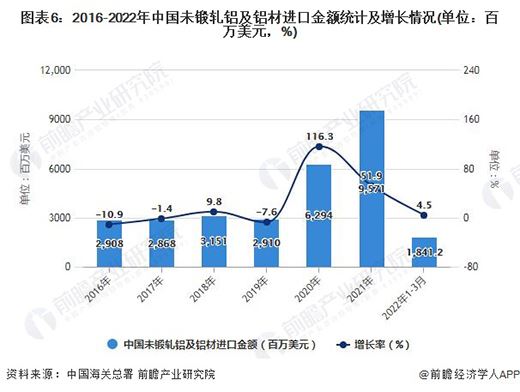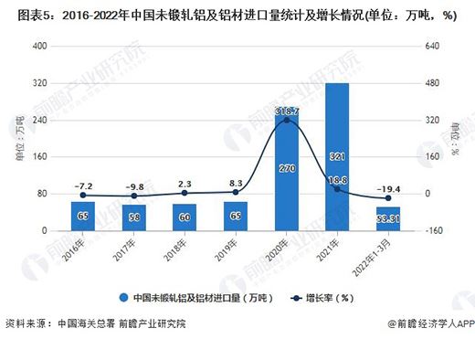 2022年一季度中國未鍛軋鋁及鋁材進口量突破50萬噸