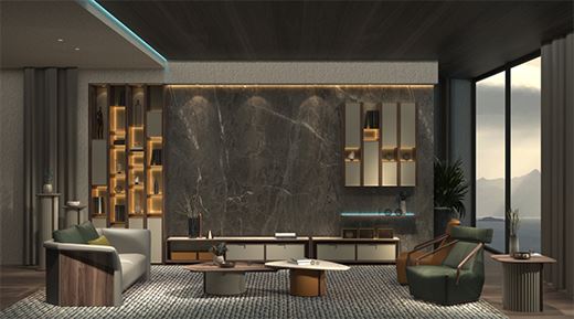 本系列源自意大利的時尚現代風格,以鋁材為主材料,通過與輔料皮革、實木、石頭、玻璃、黃銅、燈效果等材料來搭配和點綴,結合使用功能運用數列分割,黃金比例手法來塑造一個時尚舒適、奢華高檔的現代家居。