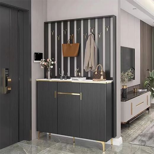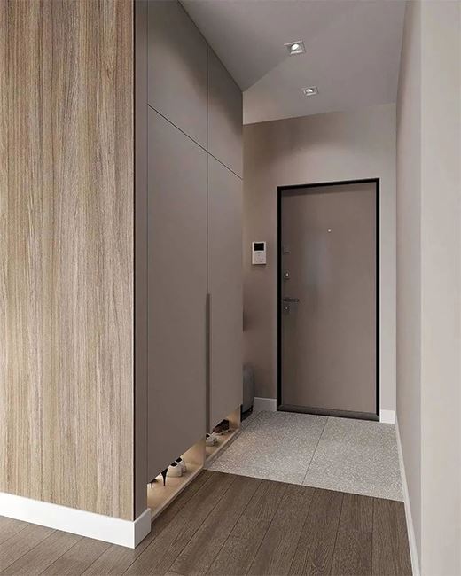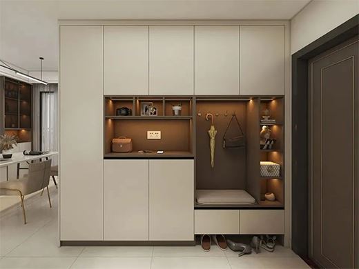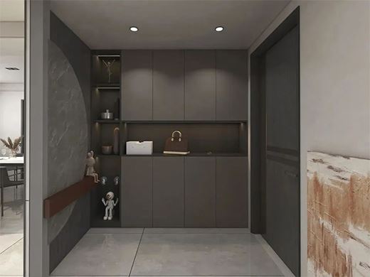 時下流行的門廳衣柜+鞋柜設計就是非常實用的選擇這種設計形式有利于完善空間機能而且看起來更具視覺統一感,效果滿分