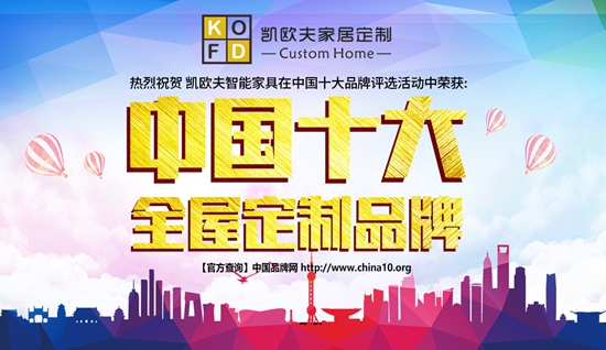 新時代,凱歐夫運籌帷幄,設立實施了系統有效的品牌營銷推廣戰略,力求通過品牌參選、央視展播、媒體宣傳、視頻網站輪播等方式將凱歐夫品牌及家居定制文化推廣到全國各地,為更多的家庭帶來品質家居生活。而在最新的“中國十大品牌”評選活動中,凱歐夫更毫無意外地榮獲了“中國十大全屋家居品牌”、“中國十大全屋定制品牌”、“中國十大衣柜品牌”、“中國著名全屋家居品牌”多項榮譽稱號,有口皆碑!