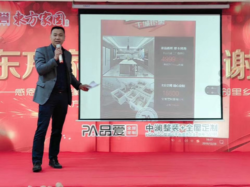 其中,品愛全屋定制市場經(jīng)理?xiàng)罱∪壬谂_上的一番演講,博得了場下業(yè)主們的熱烈掌聲。楊總從品牌影響力、產(chǎn)品優(yōu)勢、本次活動的優(yōu)惠政策等方面著手,向業(yè)主們展示了品愛全屋定制高端的品牌形象。