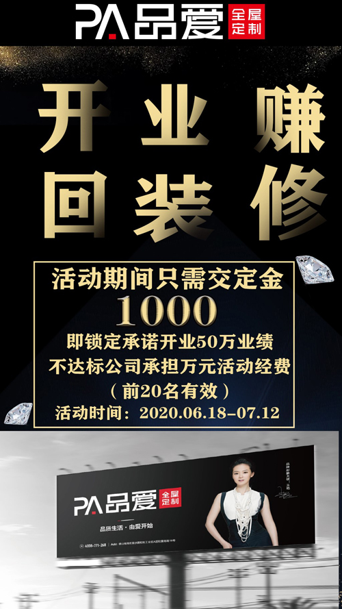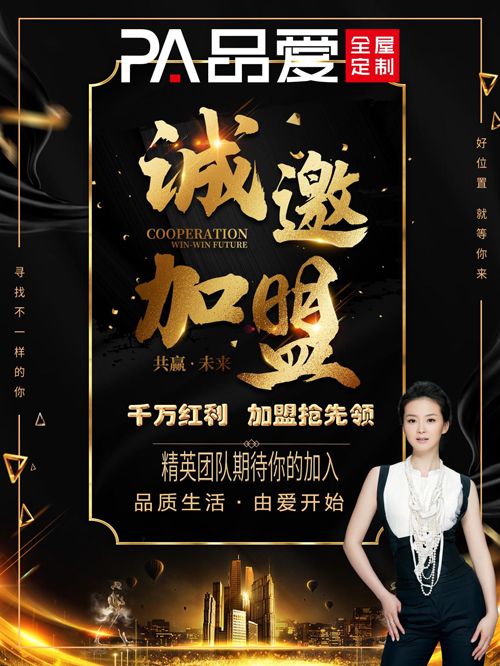 繁華已至,未來在此;搶占先機,財富無限。品愛全屋定制以千萬紅利,邀您共襄盛舉,期待您的加入!