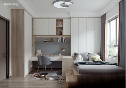 有限的兒童房空間,劃分動靜分區,不僅美觀大方,功能實用性強,讓這里可以工作、學習、休閑娛樂。合理化的布局凸顯設計師獨特的設計手法,同時被原木暖色包圍的空間碰撞出寧靜、典雅的氛圍。
