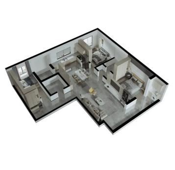 從平面圖可以看出,戶型方正,不僅有三個臥室,還有客廳落地飄窗,采光非常好。設計師通過巧妙的設計構思,實現了一個方正舒適的空間功能,開放式客餐廚一體化設計,讓居家空間更加開敞有趣。