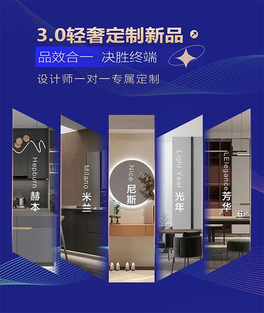 九牧全屋高端定制致力原創設計,將現代時尚與都市輕奢完美交融,攜3.0高定新品套系“光年”“尼斯”“米蘭”“赫本”重磅亮相,引領定制家居未來產品設計,呈現出強大的市場號召力。