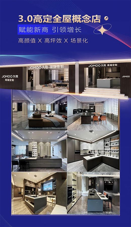 九牧鄭州紅星、廈門東渡紅星3.0高定套系全生態門店,突破傳統家居天花板,透過設計與材質的碰撞,讓功能與美學完美契合,窺見定制生活的創意新生,成功塑造出“高顏值+高坪效+場景化”高定概念全屋店。