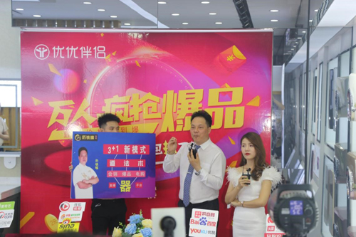 播中,特約導師歷鐵嘴老師為觀眾講解“代理商如何換道超車”,充分引導所有優優伴侶代理商推行主動營銷的策略,用新零售方式謀求發展機遇。優優伴侶營銷總監劉龍洋先生親臨現場,為觀眾講解“2020品牌規劃和營銷策略”,并感恩全國的各位精英合作伙伴選擇優優伴侶,實現發展共贏,共創財富之路。線上直播間的另一大重要環節,就是劉總為觀眾介紹優優伴侶的產品優勢,直觀地展示了爆品網紅果汁機、智能毛巾機和智能物聯熱水器的產品性能及品質。