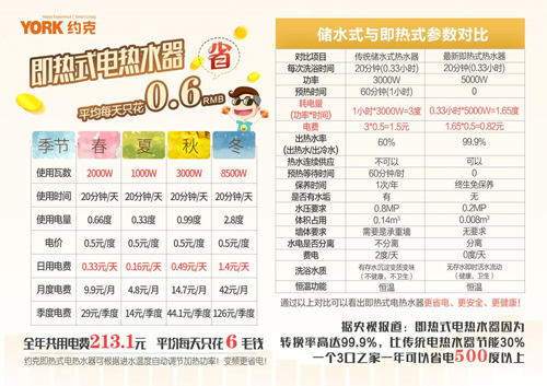 以往許多消費者有個誤區,認為功率越大的電器耗電越多。而實際上是,即熱式電熱水器因不用提前預熱,所以沒有預熱時的熱能量散失,用時打開、不用時就關閉,用多少水就放多少水,比傳統電熱水器節能30%。一個3口之家一年大概可省電500度以上(來源于央視報道)。