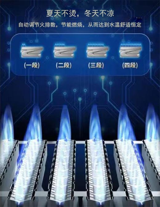 康納新品燃?xì)鉄崴鰾3C08S智能四分段燃燒,四季在變,溫暖不變。四段火力自動(dòng)切換,根據(jù)不同季節(jié)自動(dòng)調(diào)節(jié),夏季小火水溫不燙;冬季大火水溫不涼。