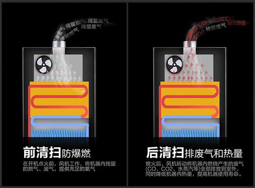 前清掃防爆燃—點(diǎn)火前,風(fēng)機(jī)排盡殘余燃?xì)狻U氣,提供充足的氧氣。