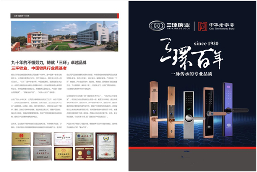 2019年9月,中國知名時政雜志《環球人物》對百年品牌“三環鎖業”進行了專題報道。作為“中國十大鎖具品牌”和“中國十大智能鎖品牌”,三環鎖業憑借核心技術、卓越產品、出色口碑和智啟未來之理念,引起了《環球人物》采編部的青睞。