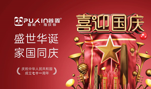 金秋送爽,丹桂飄香,在這個喜獲豐收的季節,我們又迎來了一年一度的國慶節與中秋節,兩節同輝,九州共慶!在祖國七十一華誕來臨之際,普鑫智能鎖攜全體同仁預祝全國消費者及全體普鑫家人國慶節快樂!中秋團圓!
