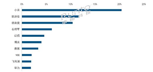 2022年6月中國智能門鎖線上市場品牌銷量結(jié)構(gòu)