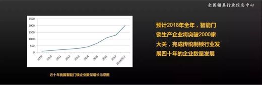 市場是有的,機會也是有的,但智能鎖行業仍面臨著不少的問題,其中最大的問題是分食的企業數量太多,100億的市場蛋糕分下去,有的企業根本吃不飽。據調研報告顯示,預計2018年全年涉及智能鎖生產的企業將突破2000家。