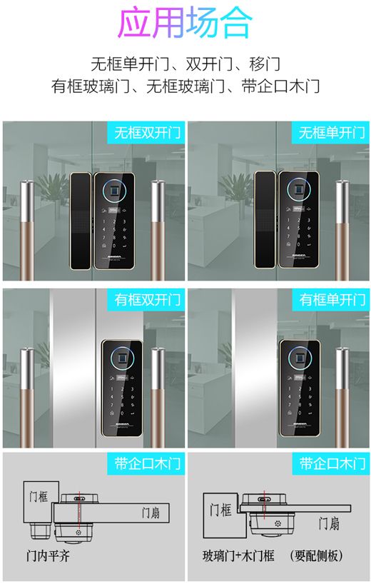 16. 適合單開玻璃門、雙開玻璃門、鋁型材門、移門等多種場合。