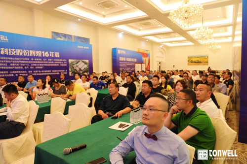 優質產品,始終是企業興旺發展的根基。一段團隊風采展示環節過后,作為企業創始人兼有技術基礎加持的全總,繼續為大家講解騰威科技的主要產品體系和產品特點。騰威人秉持“專業、專注、誠實、創新”的共同理念,打造出零VOC排放、彈性好、耐水性、高耐候性、施工簡便等產品優勢,著力提升運動的舒適感和安全度。現場嘉賓對此表現出濃厚的興趣,不停地做筆記和拍照記錄,時而給予鼓掌認可。