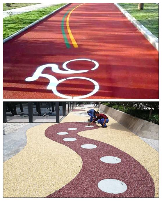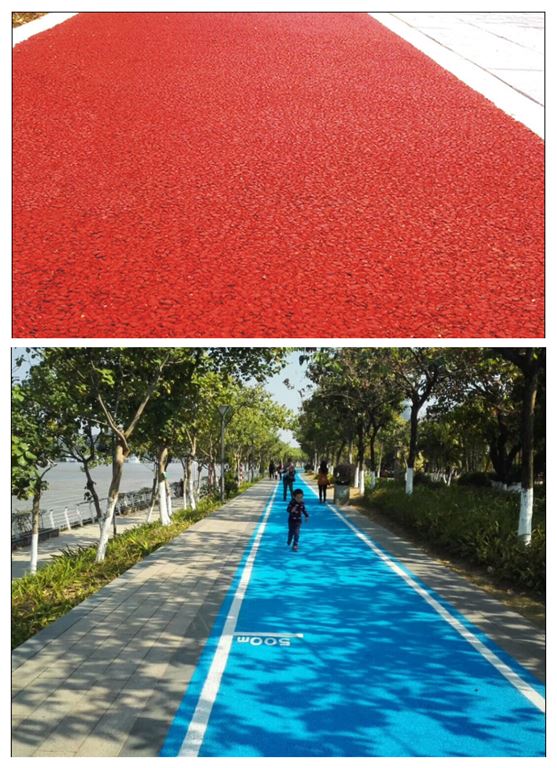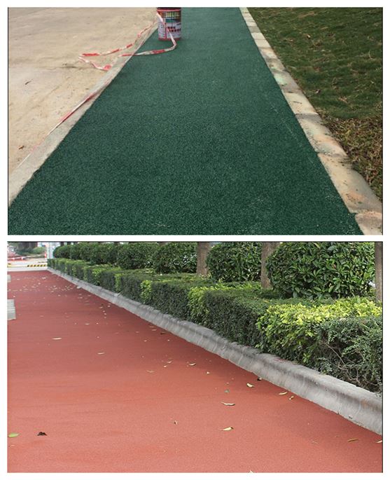 騰威公司生產(chǎn)的固瑞達透水路面膠粘劑S-13是國內(nèi)最成功、應用最廣泛的彩色透水路面膠粘劑。不同于普通的混凝土透水路面,使用S-13鋪裝的彩色透水路面俗稱“膠粘石透水路面”,該路面有更好的施工性能,可以快速固化,路面表現(xiàn)更好的展色性、更高的防滑性能、更高的耐候性和凍融穩(wěn)定性。S-13膠粘劑是采用聚氨酯改性脂肪族環(huán)氧樹脂材料作為主料,結(jié)合填料、色漿、助劑混合組成的常溫交聯(lián)型彩色膠粘劑,也叫常溫高粘彩色瀝青漿料。S-13配合骨料專用于彩色膠粘石透水路面的鋪裝。