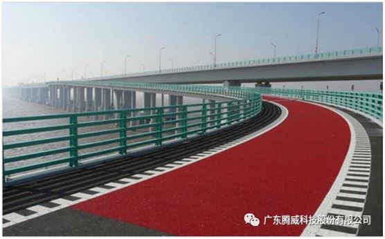 彩色防滑路面是由彩色防滑路面膠粘劑、固化劑、耐磨骨料混合鋪裝組而成;市面普遍供應的彩色樹脂膠粘劑由于脆性較高,容易導致瀝青基礎或橋梁工程出現不規則裂紋。廣東騰威針對混凝土基礎、瀝青基礎及橋梁工程開發的彩色防滑路面膠粘劑S-20PU對瀝青基礎或橋梁工程附著力高、有韌性、耐候、耐磨、不開裂。