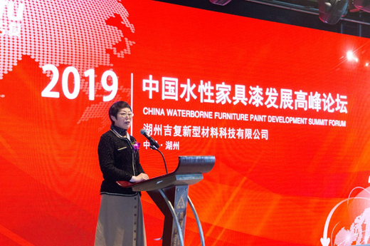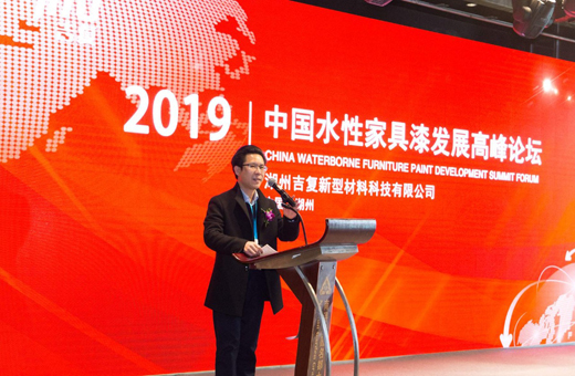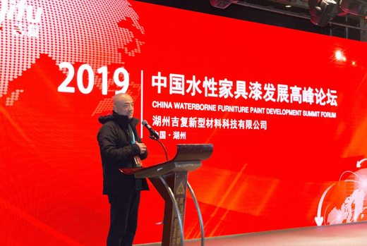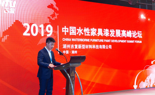 喬遷剪彩典禮后,在湖州南潯花園名都大酒店,湖州吉復新型材料科技有限公司邀請相關協會、涂料上下游、家具廠生產廠家等,共同商討水性家具漆的推廣大計,舉辦“2019 中國水性家具漆發展高峰論壇”,受邀嘉賓紛紛對水性家具漆的發展發表見解,分享心得,論道發展。