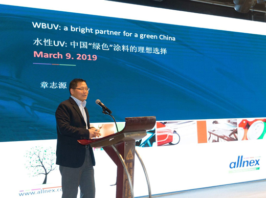 湛新樹脂(中國)有限公司亞太區技術總監章志源在會上介紹了湛新水性樹脂的應用,從結構上分析了水性UV樹脂的優點,水性UV涂料將會是家具漆的一個趨勢。而吉復率先研發的水性UV涂料,目前已經是世界上最環保的涂料。并表示湛新樹脂作為吉復的戰略合作伙伴,將一如既往地支持吉復攻克技術難關。