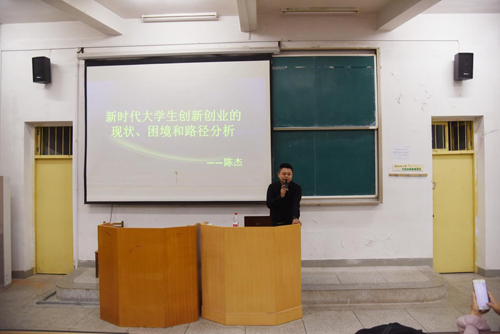 講座上,陳杰董事長向同學們介紹了“創新創業”的概念,并從國家需要、社會需要、個體需要三個方面說明了為什么要創新創業。陳董指出目前創新創業的現狀,并分享了對教育存在誤區、教育師資隊伍不完善、創新創業教育課程體系不健全等問題的看法。