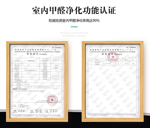 2019年,鉑英特所有產品均通過了國家涂料產品質量監督檢驗中心的相關檢測,其中公司的無機智能涂料的“室內空氣凈化功能涂覆材料凈化性能”檢測結果為“甲醛凈化性能效率”達到89.2%,