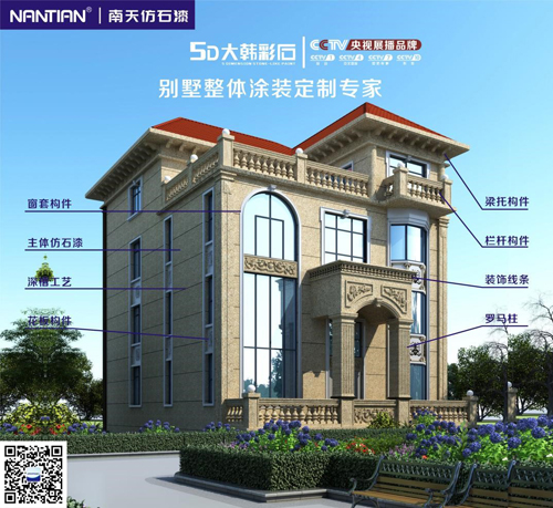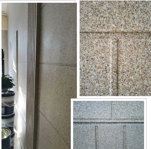 大韓彩石作為一種墻面裝修及裝飾的材料,產品質量及效果得到消費者及客戶的一致好評。漂亮的凹槽結合整個仿石漆施工更加完美,不僅還原出石材般耐磨、耐沖刷的硬度,更具備超高耐候性,優越的耐堿性,耐久性效果。在提供豐富創造的同時,還具備無與倫比的功能優勢,將色彩和個性巧妙地融入到建筑的功能和造型中,形成一種獨特的審美觀念,達到質、形、色的完美統一。
