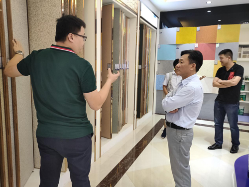 在簽約前,際通環保總經理李文武先生等嘉賓參觀了南天涂料的藝術展廳,南天涂料銷售總監祝健輝先生詳細的介紹了公司發展現狀以及未來發展方向。