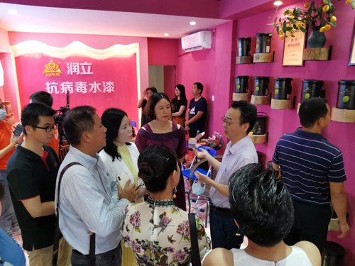 當日上午,潤立董事長何偉強先生、總經理唐瑤女士、廣東省涂料協會秘書長呂水列、廣東微生物研究所謝小保主任、廣東迪美生物技術有限公司專家以及多位媒體及客商陸續到場,共同見證了潤立漆的“高光”時刻。