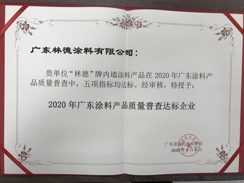 會議期間,廣東省涂料協會還隆重舉行了“2020廣東涂料行業質量普查達標企業表彰”頒獎典禮。憑借著過硬的產品品質,林德漆旗下的內墻涂料產品順利通過質量普查,得到行業的認可和肯定,被授予“2020廣東涂料行業質量普查達標企業”榮譽稱號,在會上大放異彩,備受矚目。