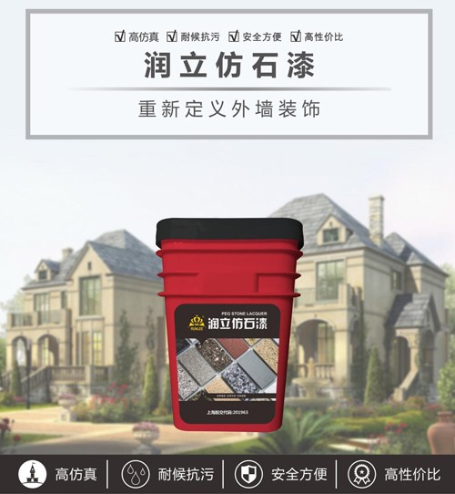 潤立品牌的仿石漆產品具備了極強的耐候性能和自潔抗污能力,自主適應全國各地的復雜性氣候,享有30年超長質保年限。在施工方面,潤立仿石漆工序簡單,可以在水泥磚墻、泡沫、石膏、鋁板、玻璃、瓷磚等多種基面上直接施工,同時也適用于曲面或其它復雜造型面,用它來進行舊墻翻新也毫無顧慮。