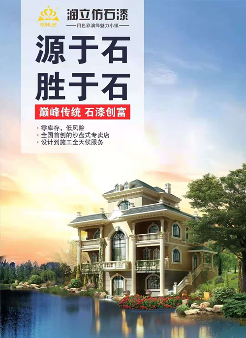 乘著這陣利好的發(fā)展東風,潤立還將加速實踐仿石漆“千城萬店”項目,聚焦龐大的鄉(xiāng)村小鎮(zhèn)市場,陸續(xù)在全國布局這種裝配式店面,讓合作經銷商發(fā)展更快、獲益更多、經營更長遠;讓更多消費者能夠享用到更環(huán)保、更實用的涂料產品,繼續(xù)為打造中國美麗鄉(xiāng)村貢獻力量!