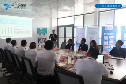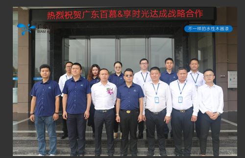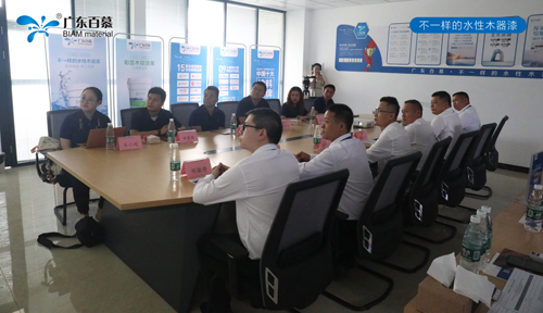 會(huì)議結(jié)束后,在廣東百慕技術(shù)專家的帶領(lǐng)下,享時(shí)光團(tuán)隊(duì)近距離地參觀了百慕總部生產(chǎn)基地,實(shí)地考察了解水性涂料的工藝和質(zhì)控流程。整潔有序的生產(chǎn)區(qū)間、涂裝效果逼真靚麗的樣品、技術(shù)團(tuán)隊(duì)的專業(yè)解說(shuō),都讓享時(shí)光團(tuán)隊(duì)深為認(rèn)可,對(duì)合作前景充滿樂(lè)觀和期盼。