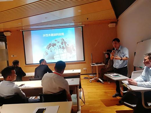 活動中設(shè)置了技術(shù)交流會討環(huán)節(jié),大寶漆安排環(huán)保水性UV漆專案組資深專家鐘文龍副理分享在水性漆專業(yè)應(yīng)用及涂裝技語方面的知識。