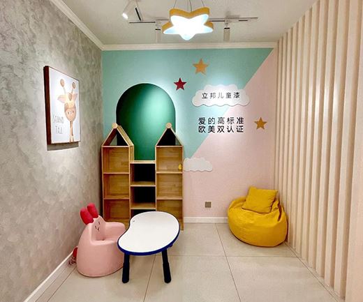 店內將一些常見生活空間,如客廳、餐廳、兒童房等區域作為“樣板間”展示。這些富含家居設計巧思的“樣板間”確保了消費者在進店的短時間內,即可看到涂刷效果和了解產品服務。