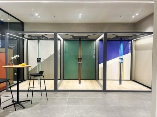 三個連結又獨立的巨大盒子是店鋪中的亮點,它們就是BOX展示空間,沉浸式的感受宣偉涂料的三大特色。