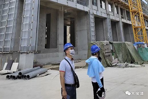 為鼓舞市場,東莞大寶化工經銷事業部副總經理葉子琛,冒著40℃高溫,在南京大寶趙總及工程監理的帶領下,實地走訪施工現場及樣板間,并了解后續地坪漆等合作項目,用實際行動回饋經銷商及客戶對大寶漆的信任與支持。