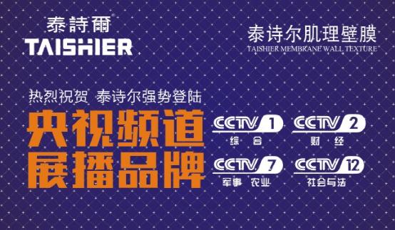 著名藝術涂料品牌泰詩爾震撼登陸中央電視臺CCTV-1、CCTV-4、CCTV-7以及CCTV-12四大黃金頻道,成為2017年泰詩爾品牌營銷戰略的關鍵一環。相信隨著泰詩爾品牌宣傳片在央視滾動展播,品牌價值與品牌力將得以最大化提升,以銳不可擋之勢席卷中國市場。