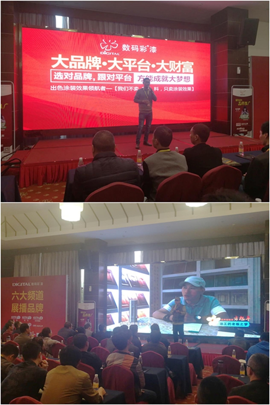 隨后,杭州數碼彩營銷中心總經理方旭平先生上臺,主要分享水性木器漆的成功經驗。方總表示,數碼彩在木器漆山窮水盡之時,緊隨時代潮流,穩抓時代機遇,以“解決手藝人手藝”為出發點,提出了全新型營銷模式,成功扭轉了木器漆市場。而方總作為油木工出身的數碼彩人當然也得益于其中,好評如潮的市場口碑,讓方總在杭州區域贏得了“小有名氣”的成績。由此可見,數碼彩漆品牌本身的創新力,以及無時無刻不為經銷商家人們著想的初衷。