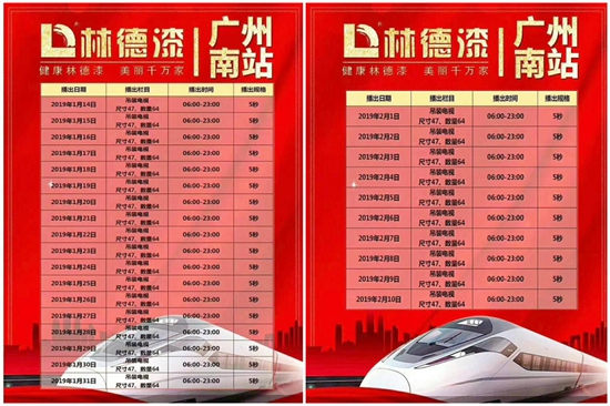 跨入2019年,林德漆捷報頻頻!近日,林德漆強勢登陸廣州南站高鐵廣告,品牌宣傳的腳步從未停止過,林德漆一直都在努力著。