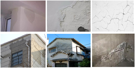 墻面A:雨季來襲,外墻皮膚滲水發霉,皮膚表層漏水,導致內墻皮膚也透水,內墻膚質陸續出現發黃、起泡、剝落、滋生霉菌等現象。