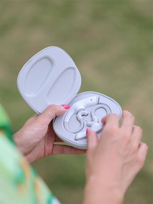 飛利浦A8606在佩戴的穩固性和舒適度方面的表現也是很出色的。整體的半月形耳掛式設計,能夠很好地貼合雙耳,保證了佩戴的穩固性,不用說騎行,即便是戴著跳繩也絲毫不用擔心掉落。硅膠材質包裹的耳掛,柔軟舒適,皮膚觸感上佳。藏在硅膠之下的耳掛,是鈦合金制成,密度小、強度大,在為耳機整體減重的同時,還擁有很強的彈性。可以說,飛利浦A8606真無線骨傳導耳機的外形設計是“剛柔并濟”,非常實用。