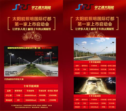 宇之源以無可比擬的產(chǎn)品性能優(yōu)勢,成為了行業(yè)中唯一一家可以做到2倍亮度、5倍壽命、5倍陰雨天的太陽能路燈品牌。