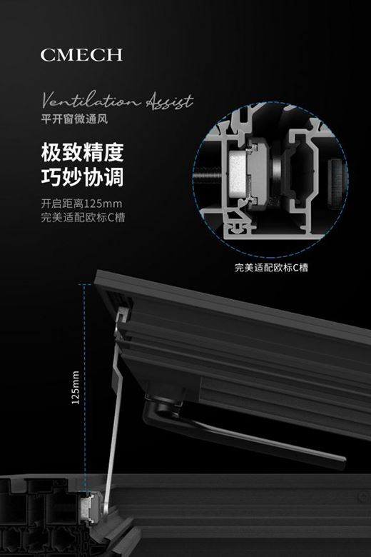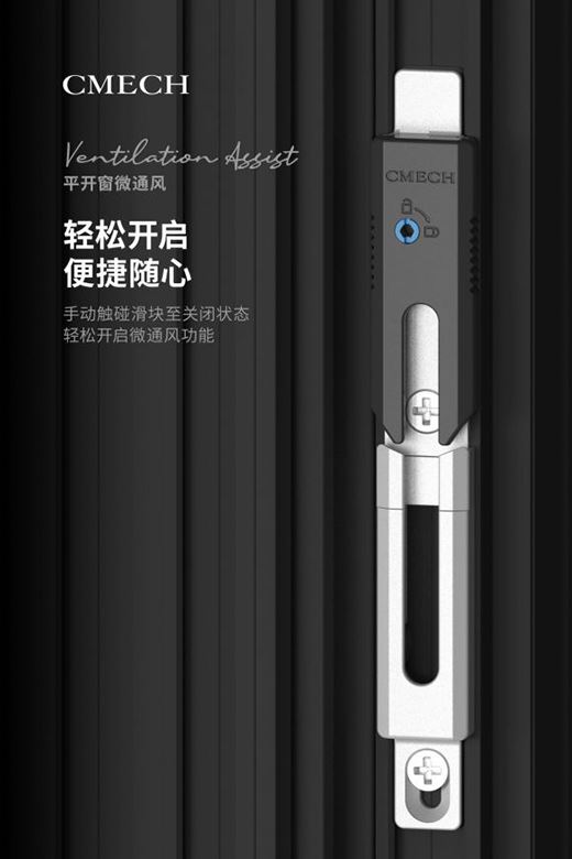 當然,開窗通風也有一些值得擔憂和顧慮的地方,除了上述極端天氣的考慮之外,還有用戶對于安全性能的需求,門窗五金品牌CMECH希美克就推出了平開窗微通風門窗五金組件,在提高通風量同時,保證門窗安全性。