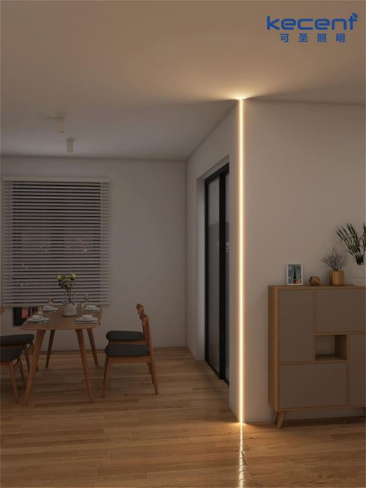 如今在市場上銷售的LED線條燈,有多種款式任消費者挑選,像KECENT可圣照明熱銷的線條燈產品,就有平角、陽角、陰角這三大類可選,其中又細分到平角批灰式、陽角批灰式、陰角批灰式、單邊預埋式、平角嵌入式、陰角明裝式、常規明裝、超薄明裝等多種類,很好地滿足了不同消費者的需求。像有些消費者比較傾向于免開槽的產品,那就可以選擇陰角明裝、常規明裝和超薄明裝這三款,即使在家居裝修的后期也能輕松安裝上,隨時享受明裝線條燈所帶來的藝術家居氛圍。