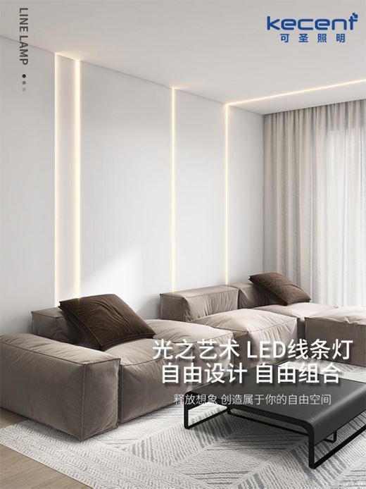 當然了,在選擇LED線條燈時,我們除了要留意它的款式,也要關注產品的品質,比如關心下它的燈槽、燈帶、面蓋等多方面的信息。這邊建議,要選擇在防銹、耐磨、抗腐蝕上效果更佳的加厚鋁材燈槽,和通過“美國能源之星”光衰測試的安全低壓燈帶,還有透光率更高的面蓋,以期達到“1+1+1>3”的高品質效果,而這樣的LED線條燈,在KECENT可圣照明的小程序商城與京東、天貓旗艦店都能找得到。
