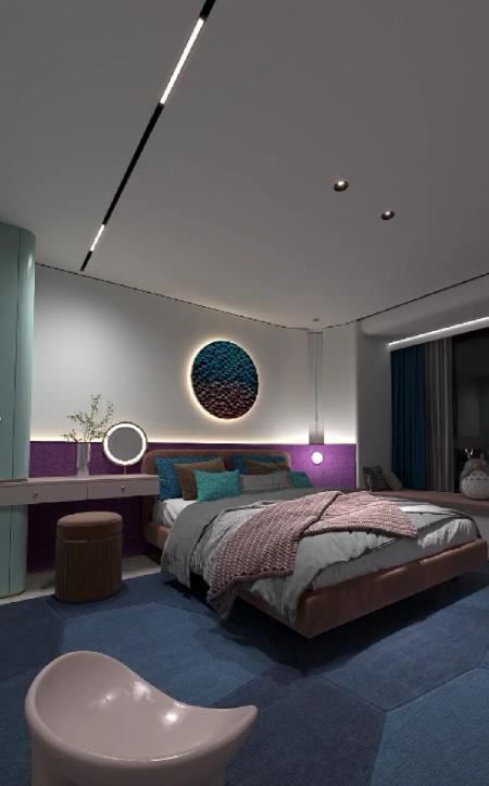 老人房的起夜模式,父母睡覺(jué)較輕,晚上起夜也是比較多的,只要下床了,無(wú)主燈的紅外加上光感器感應(yīng)到人體,會(huì)把相應(yīng)的床下面的氛圍燈慢慢亮起,既能夠保證這個(gè)人體動(dòng)線的這個(gè)區(qū)域內(nèi)的燈光安全,但是又不影響其他人的睡眠。更不會(huì)突然亮起和熄滅,刺激眼部,起夜回來(lái)之后也不影響睡意。
