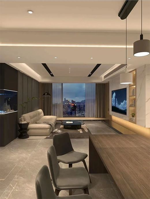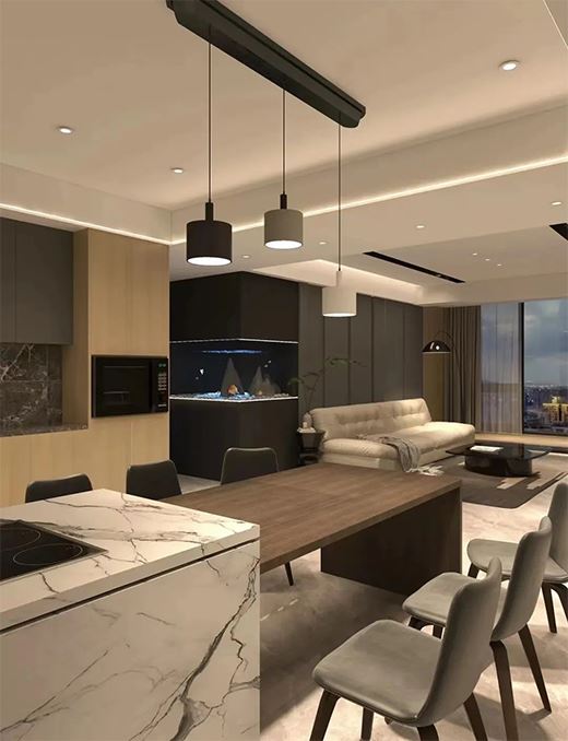 灰色大理石瓷磚,客餐廳通鋪空間更顯大